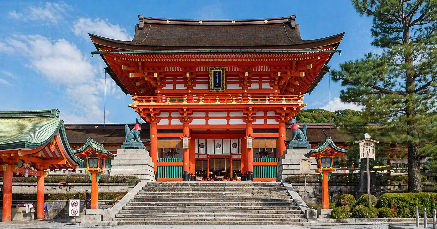 The entrance to Fushimi Inari Taisha is directly in front of you.